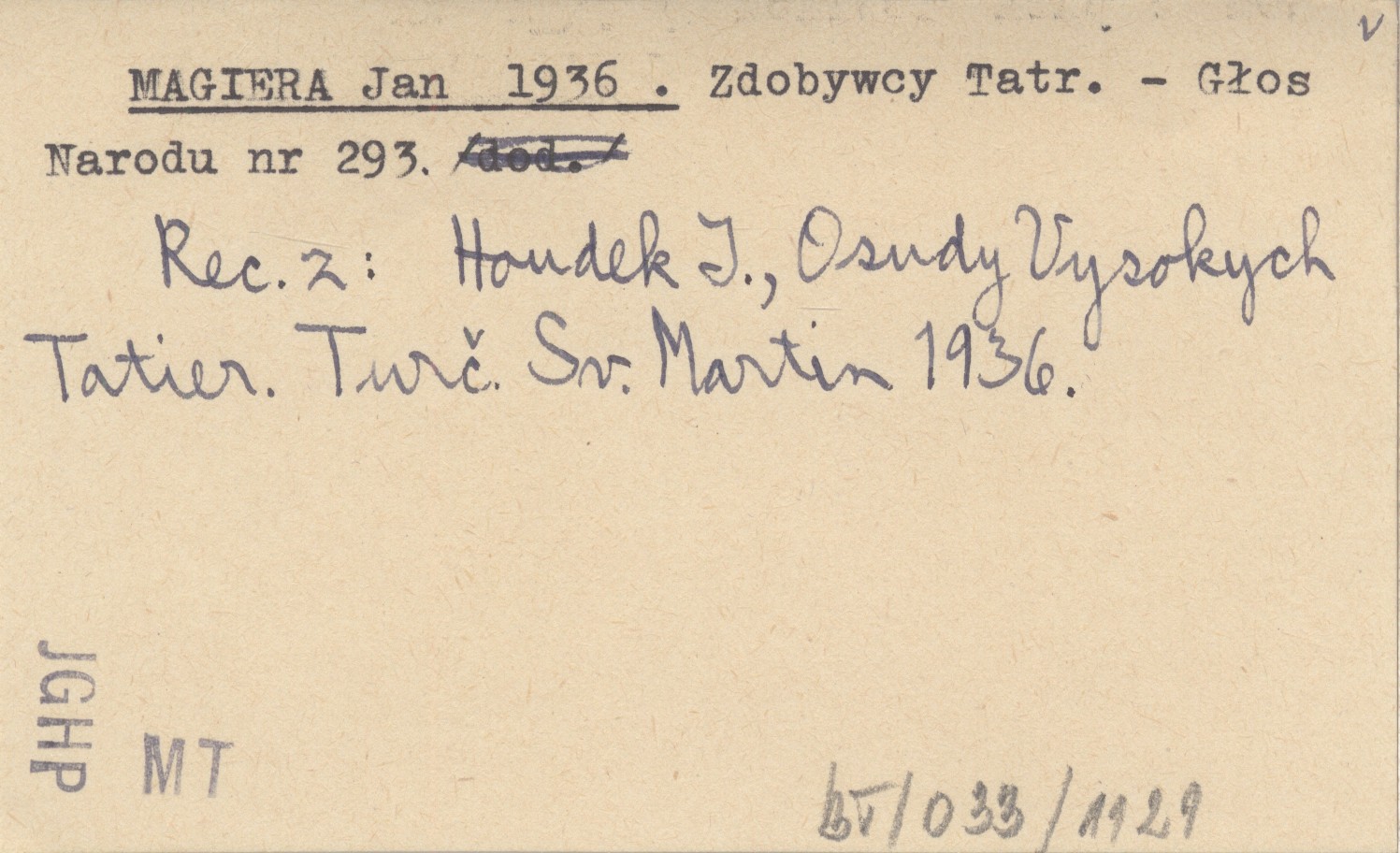 Głos Narodu, Nr 293. Rec. z: HOUDEK J., Osudy Vysokych Tatier. Turč. Sv. Martin 1936.