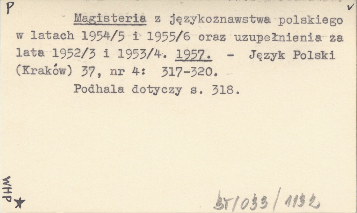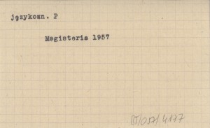 Magisteria z językoznawstwa polskiego w latach 1954/5 i 1955/6 oraz uzupełnienia za lata 1952/3 i 1953/4. 1957