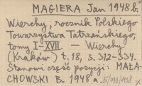 MAGIERA Jan 1948 a Pamiętnik Towarzystwa Tatrzańskiego, roczniki 1876-1920.