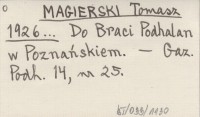 MAGIERSKI Tomasz 1926... Do Braci Podhalan w Poznańskiem.
