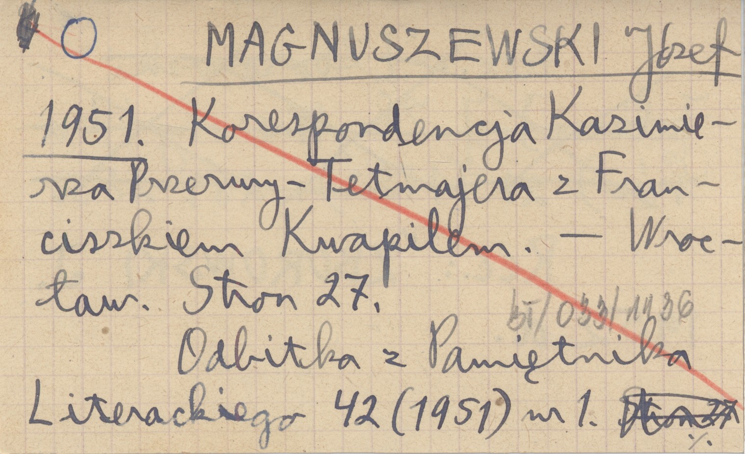 MAGNUSZEWSKI Józef 1951 Korespondencja Kazimierza Przerwy-Tetmajera z Franciszkiem Kwapilem.