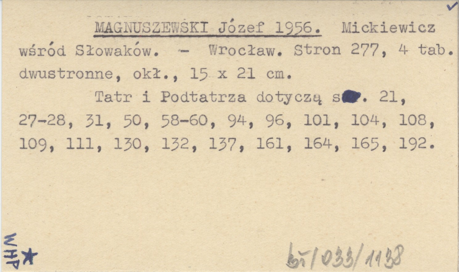 MAGNUSZEWSKI Józef 1956 Mickiewicz wśród Słowaków.