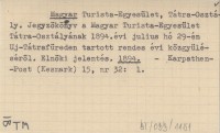 Magyar Turista-Egyesület, Tátra-Osztály. Jegyzökönyv a Magyar Turista-Egyesület Tátra-Osztályának 1894.évi julius hó 29-én Uj-Tátrafüreden tartott rendes évi közgyüléséröl. Elnöki jelentés. 1894