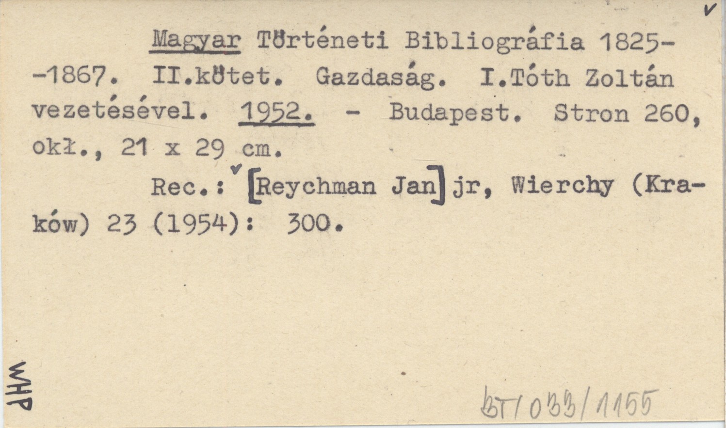 Magyar Történeti Bibliográfia 1825-1867. II.kötet. Gazdaság. I.Tóth Zoltán vezetésével. 1952