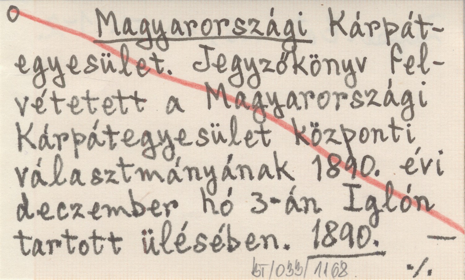 Magyarországi Kárpátegyesület. Jegyzőkönyv felvétetett a Magyarországi Kárpátegyesület központi választmányának 1890. évi deczember hó 3-án Iglón tartott ülésében. 1890