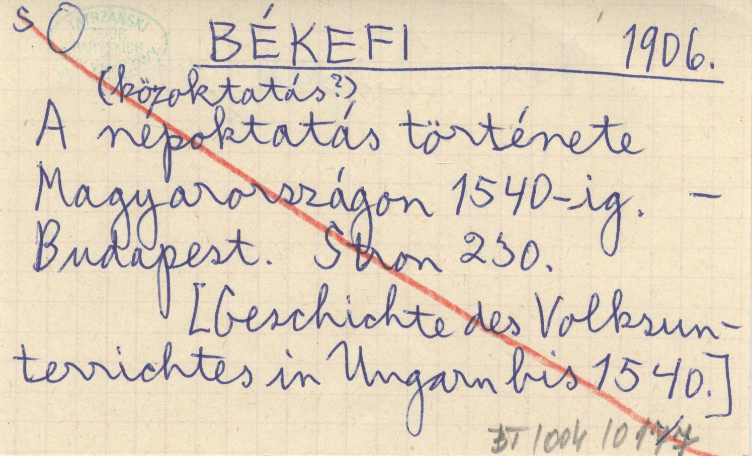 BÉKEFI 1906 A (közoktatás?) népoktatás története Magyarországon 1540-ig.
