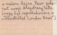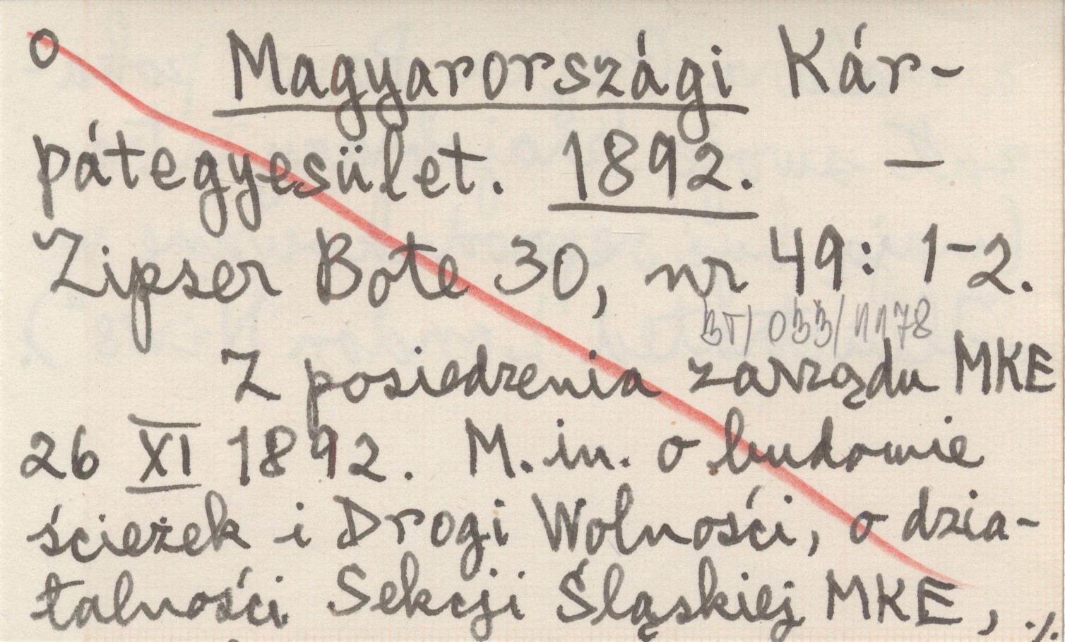 Zipser Bote, 30, nr 49: 1-2. Z posiedzenia zarządu MKE 26 XI 1892. M.in. o budowie ścieżek i Drogi Wolności, o działalności Sekcji Śląskiej MKE, a malarz Gejza Paur pokazał swoje krajobrazy tatrz. (mają być reprodukowane w "Illustrated London News").