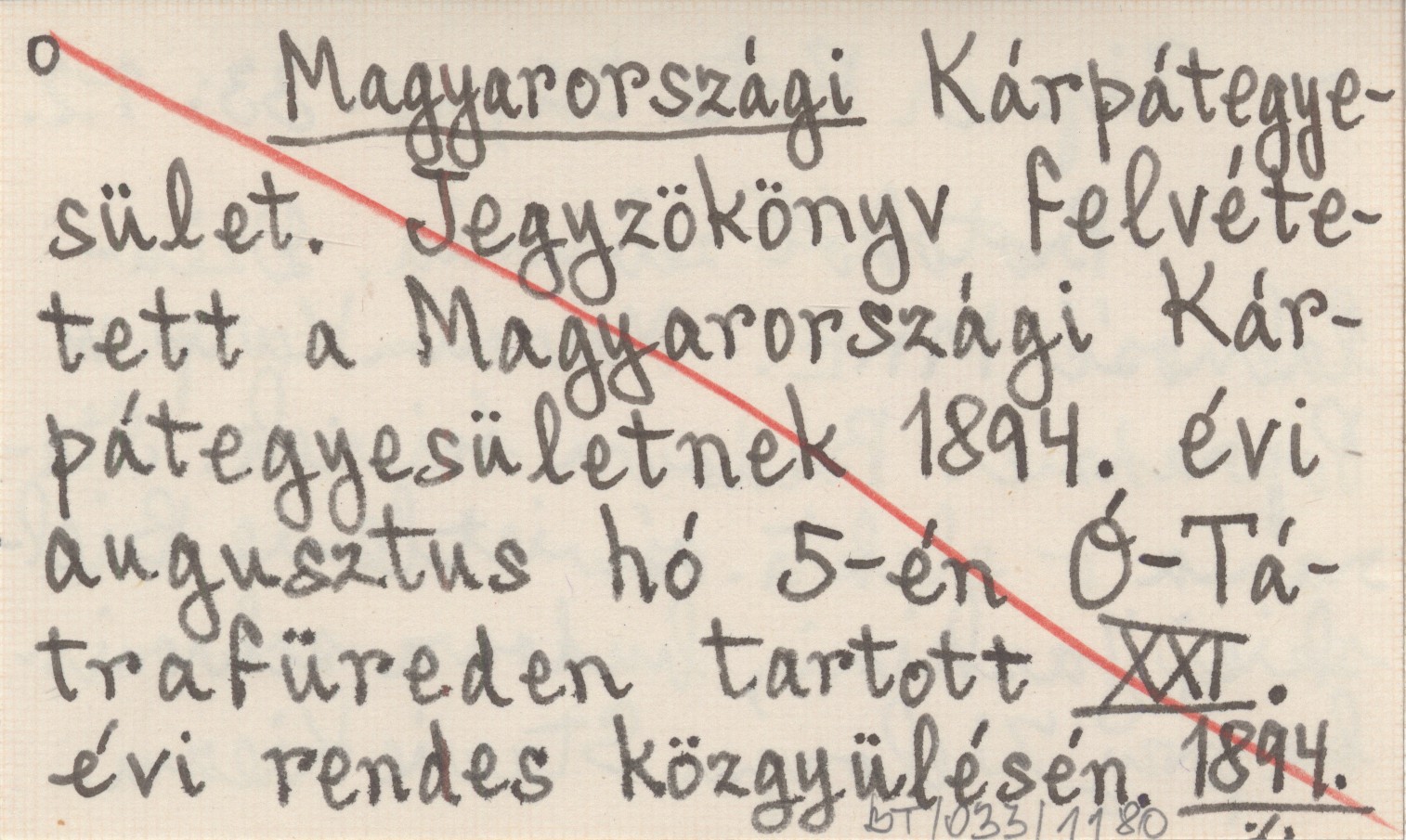 Magyarországi Kárpátegyesület. Jegyzökönyv felvétetett a Magyarországi Kárpátegyesületnek 1894. évi augusztus hó 5-én Ó-Tátrafüreden tartott XXI. évi rendes közgyülésén. 1894