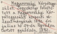 Magyarországi Kárpátegyesület. Jegyzökönyv felvétetett a Magyarországi Kárpátegyesület központi választmányának 1892. évi julius hó 24-én Poprádon tartott gyülésén. 1892