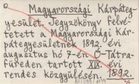 Magyarországi Kárpátegyesület. 1892