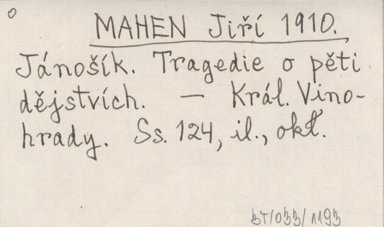 MAHEN Jiří 1910 Jánošík. Tragedie o pěti dějstvích.