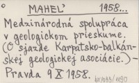 MAHEĄ 1958... Medzinárodná spolupráca v geologickom prieskume. (O sjazde Karpatsko-balkánskej geologickej asociácie).