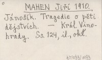 MAHEN Jiří 1910 Jánoąík. Tragedie o pěti dějstvích.