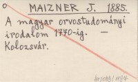 MAIZNER J. 1885 A magyar orvostudományi irodalom 1770-ig.