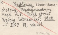 Najbliższy sezon samochodowy. Międzynarodowy rajd A. P. Rajd górski. Wyścig tatrzański. 1928