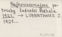 Najkonieczniejsze potrzeby ludności Podhala. 1921