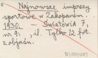 Najnowsze imprezy sportowe w Zakopanem. 1930