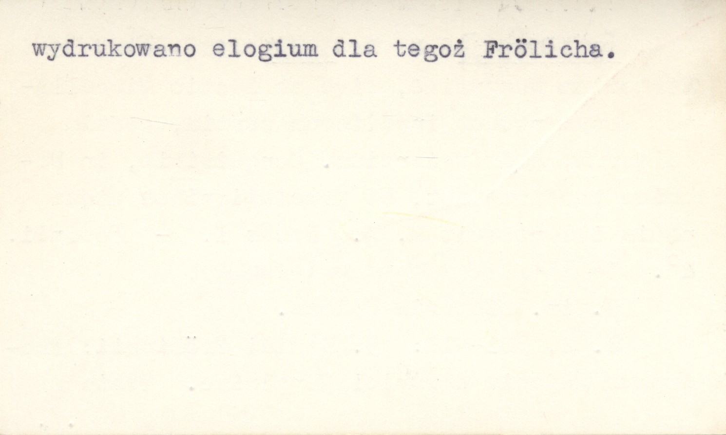 Posonii , 442, 17 s., 2°. M. in. historia Spisza. S. 2, 381-418: 9. Davidi Frölichii: Prodromus majoris chronici Hungariae. Tamże wydrukowano elogium dla tegoż Frölicha. Druk: J. P. Royer.