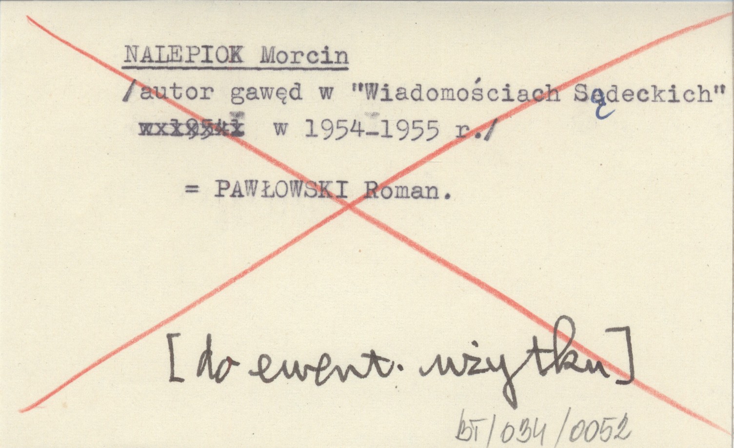 PAWŁOWSKI Roman NALEPIOK Morcin (autor gawęd w "Wiadomościach Sądeckich" w 1954-1955 r.) [do ewent. użytku]