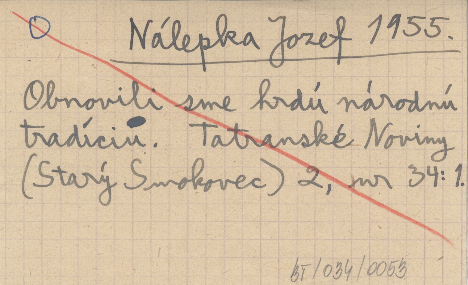 NÁLEPKA Jozef 1955 Obnovili sme hrdú národnú tradíciu.