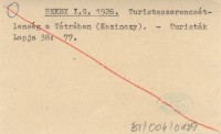 BEKEY I. G. 1926 Turistaszerencsét lenség a Tátrában (Kazinczy).