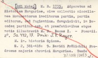 M. B. [BEL Matej] 1735 Adparatus ad Historiam Hungariae, sive collectio miscellanea Monumentorum ineditorum partim, partim editorum, sed fugientum. Conquisivit, in Decades partitus est, et praefationibus atque notis illustravit M. B. Decas I.