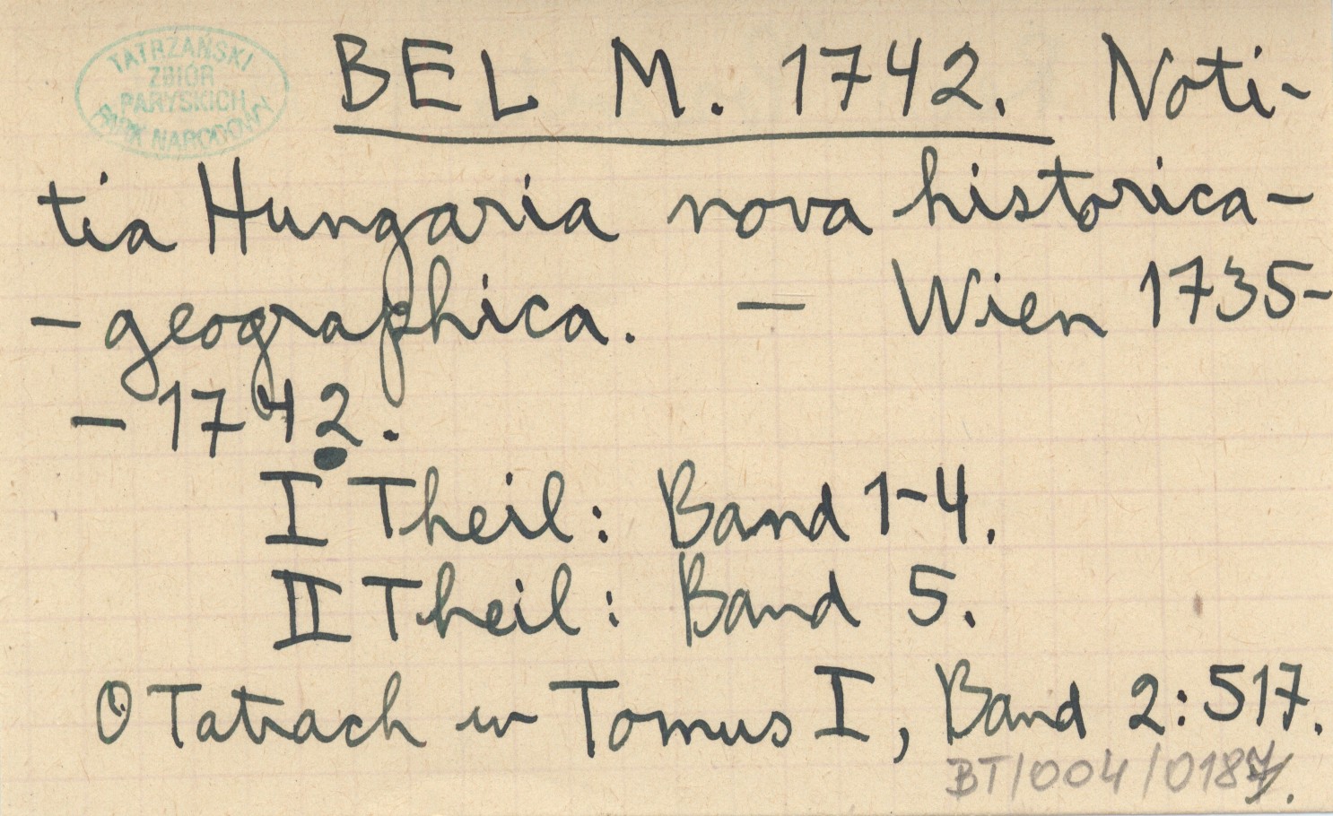 Wien , 1735-1742, T. 1, nr 1-4 ; t. 2, nr 5. O Tatrach w t. 1, nr 2: 517. REC: POSEWITZ T. 1900 b