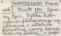 MiniM [NAMYSŁOWSKI Franciszek] 1911 Spisz czy Spiż. Próbka historyczno-filologicznego wyjaśnienia i ustalenia pierwotnej nazwy dawnej dzielnicy polskiej.