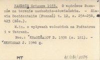 NANDRIŞ Grigore 1933 O wędrówce Rumunów na terenie zachodnio-słowiańskim.
