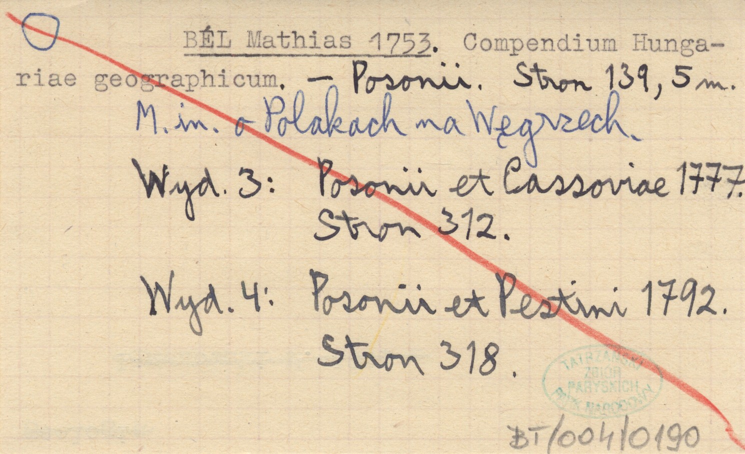 Posonii , 139 s., 5 map. M. in. o Polakach na Węgrzech. Wyd. 3: Posonii et Cassoviae 1777: 312. Wyd. 4: Posonii et Pestini 1792: 318.