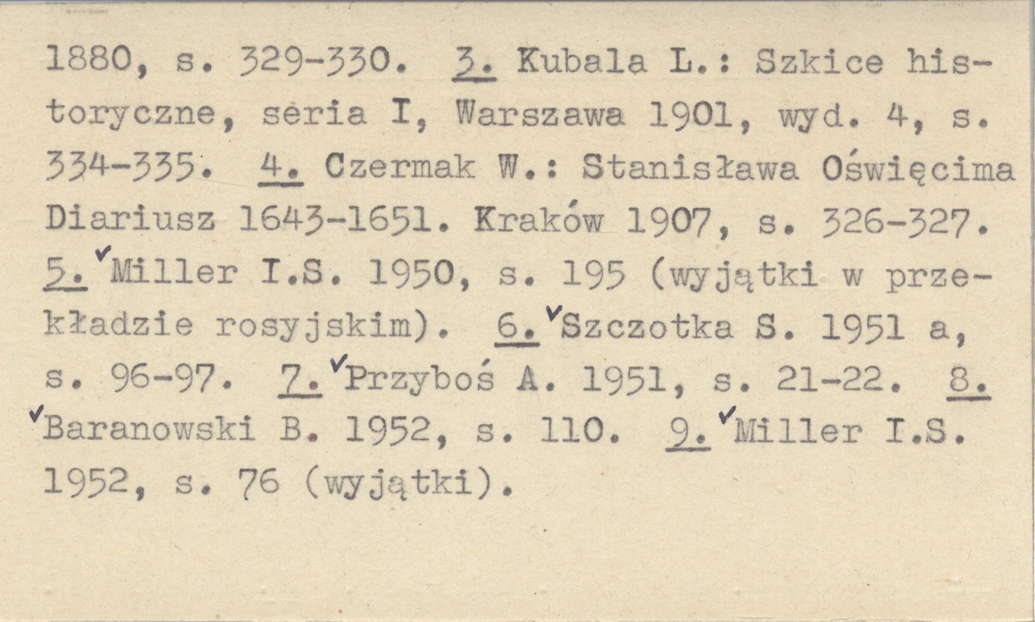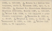 , Rękopisy: 1. Biblioteka Ossolińskich we Wrocławiu, nr 224: 1161-1162 (kopia współczesna). 2. Biblioteka Jagiellońska w Krakowie, nr 5426 (zbiory Żegoty Paulego), k. 20 (kopia z 19 wieku). Drukowano w następujących pozycjach: 1. Kubala L. 1873, s. 120-121. 2. Kubala L. 1880, s. 329-330. 3. Kubala L.: Szkice historyczne, seria I, Warszawa 1901, wyd. 4, s. 334-335. 4. Czermak W.: Stanisława Oświęcima Diariusz 1643-1651. Kraków 1907, s. 326-327. 5. Miller I.S. 1950, s. 195 (wyjątki w przekładzie rosyjskim). 6. Szczotka S. 1951 a, s. 96-97. 7. Przyboś A. 1951, s. 21-22. 8. Baranowski B. 1952, s. 110. 9. Miller I.S. 1952, s. 76 (wyjątki).