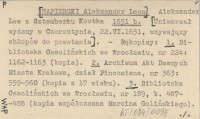 Aleksander Lew z Sztemberku Kostka [NAPIERSKI Aleksander Leon] 1651 b [Uniwersał wydany w Czorsztynie, 22.VI.1651, wzywający chłopów do powstania].