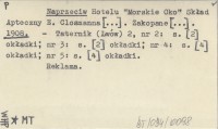 Naprzeciw Hotelu "Morskie Oko" Skład Apteczny E. Closmanna [...]. Zakopane [...]. 1908