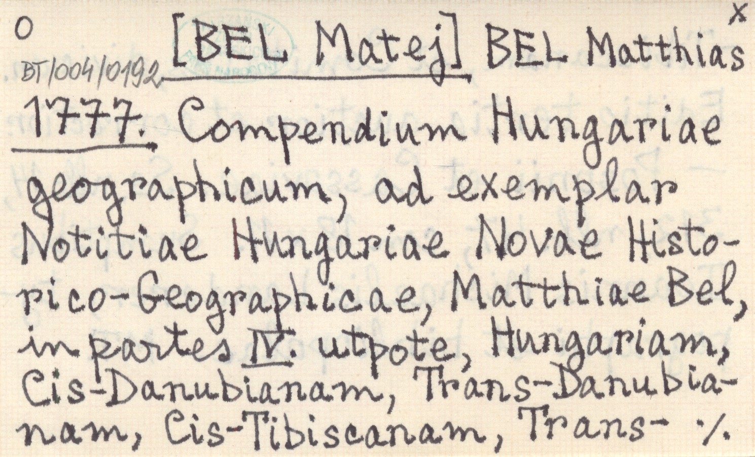 BEL Matthias [BEL Matej] 1777 Compendium Hungariae geographicum, ad exemplar Notitiae Hungariae Novae Historico-Geograficae, Matthiae Bel, in partes IV. utpote, Hungariam, Cis-Danubianam, Trans-Danubianam, Cis-Tibiscanam, Trans-Tibiscanam, et Comitatus, divisum. Editio tertia auctior et correctior.