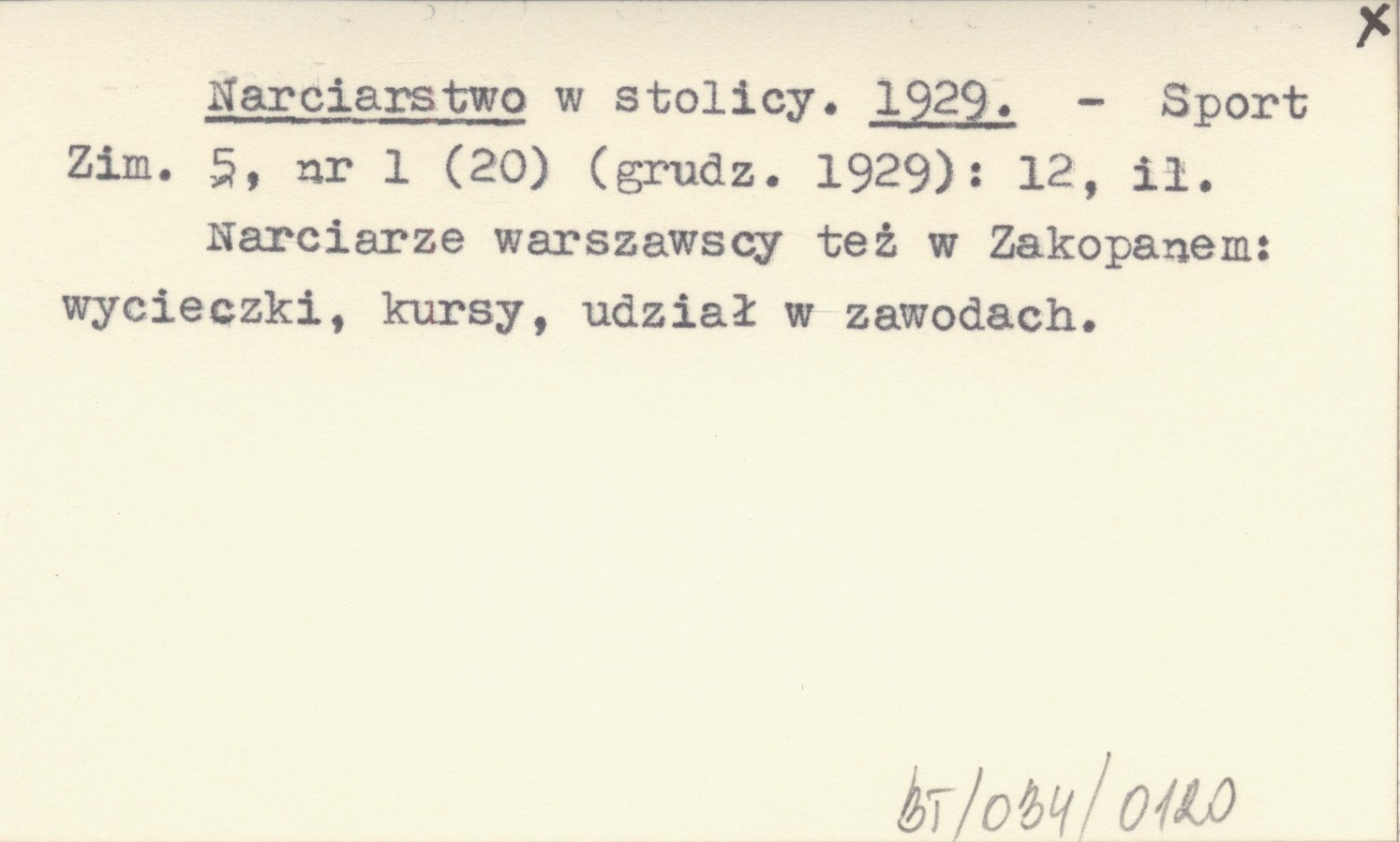 Sport Zimowy, 5, nr 1 (20) (XII 1929): 12, il. Narciarze warszawscy też w Zakopanem: wycieczki, kursy, udział w zawodach.