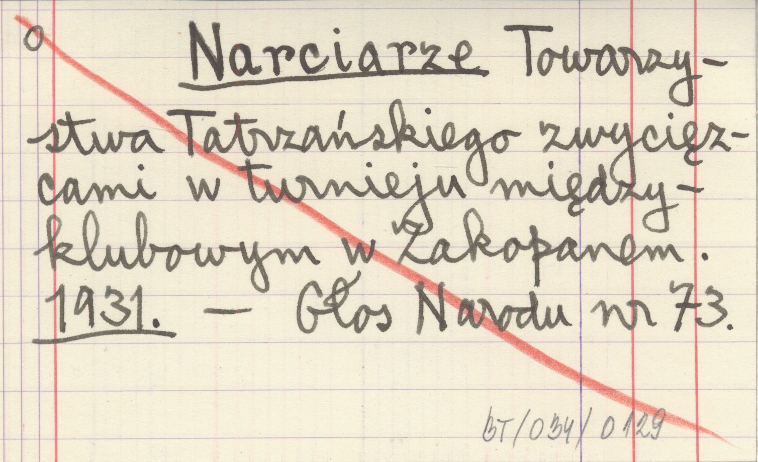 Narciarze Towarzystwa Tatrzańskiego zwycięzcami w turnieju międzyklubowym w Zakopanem. 1931