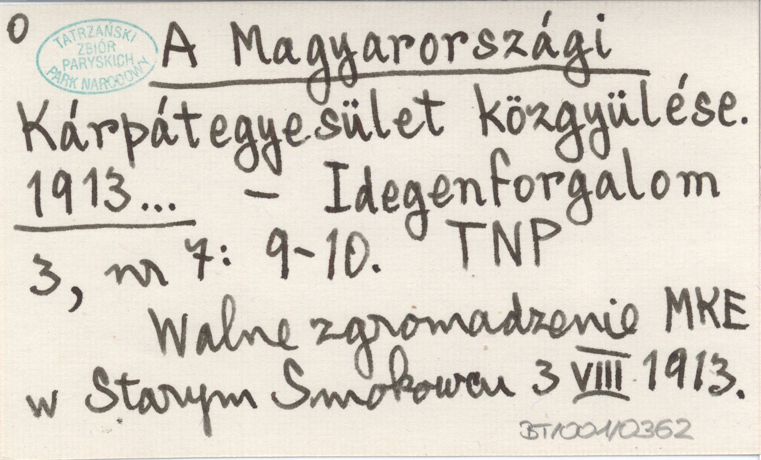 Idegenforgalom, 3, nr 7: 9-10. Walne zgromadzenie MKE w Starym Smokowcu 3 VIII 1913.