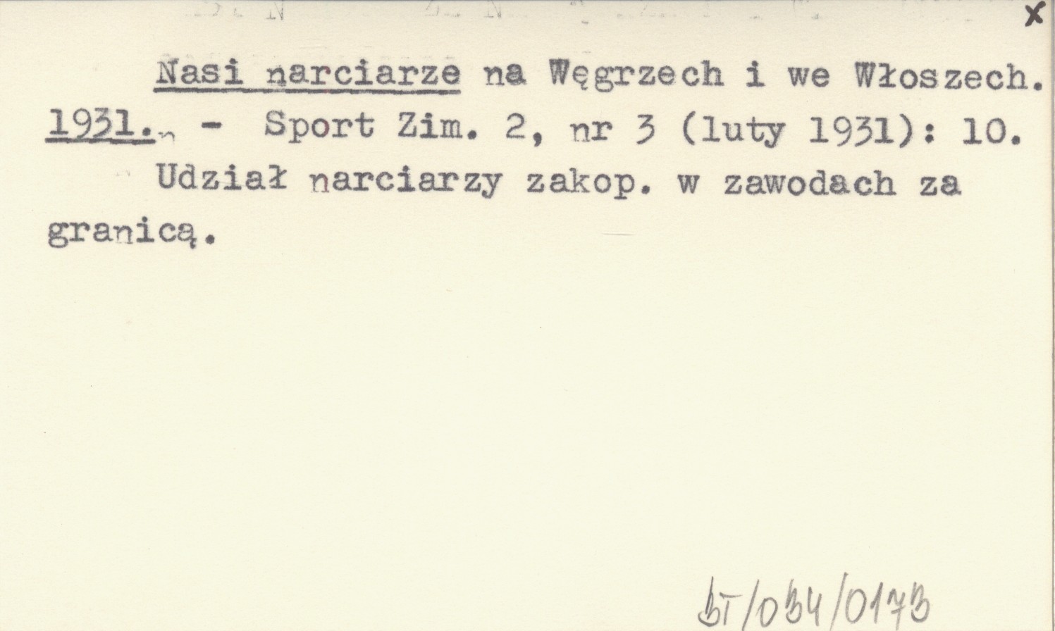 Sport Zimowy, 2, nr 3 (II 1931): 10. Udział narciarzy zakop. w zawodach za granicą.