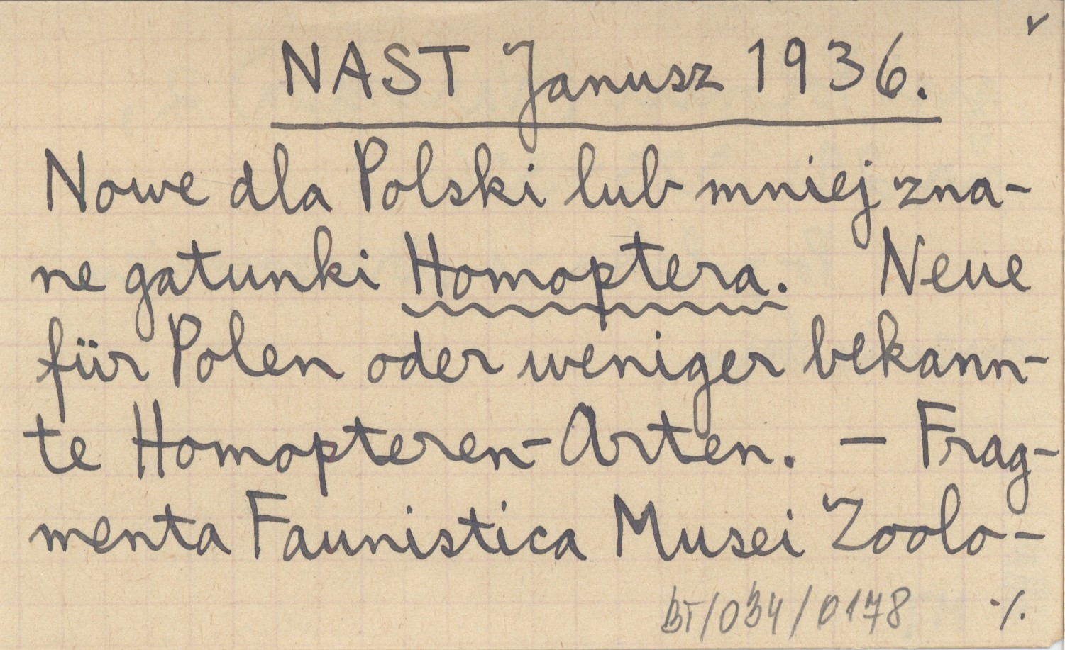 NAST Janusz 1936 Nowe dla Polski lub mniej znane gatunki Homoptera. Neue für Polen oder weniger bekannte Homopteren-Arten.