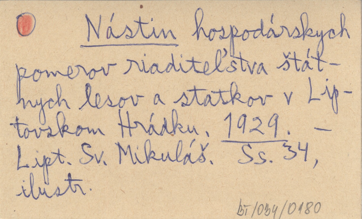 Nástin hospodárskych pomerov riaditeµstva ¹tátnych lesov a statkov v Liptovskom Hrádku. 1929