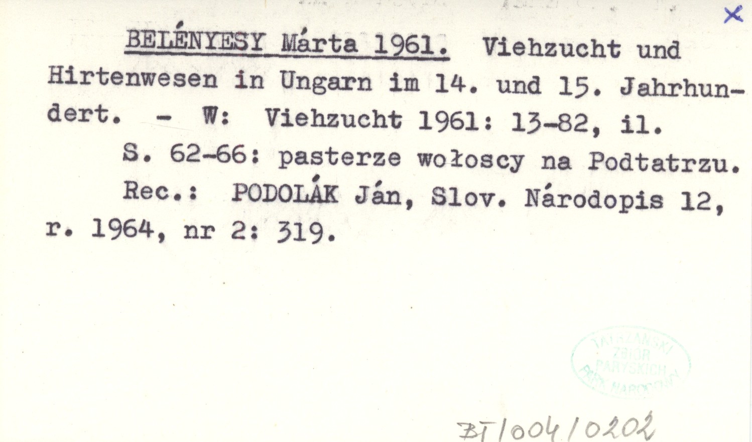 BELÉNYESY Márta 1961 Viehzucht und Hirtenwesen in Ungarn im 14. und 15. Jahrhundert.