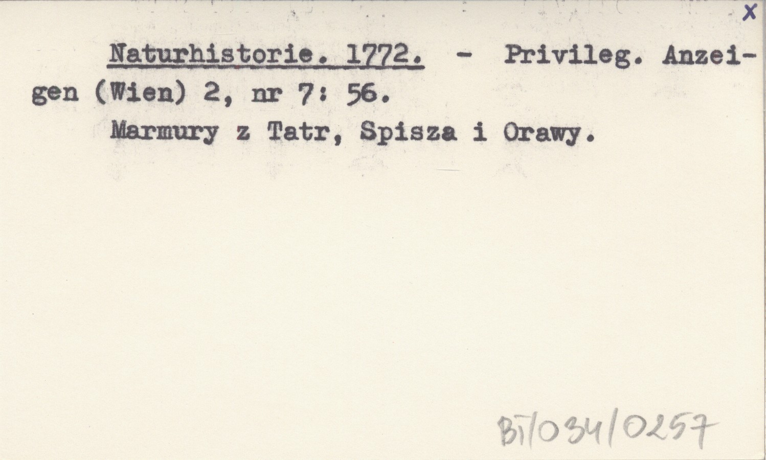 Privileg. Anzeigen (Wien) , 2, nr 7: 56. Marmury z Tatr, Spisza i Orawy.