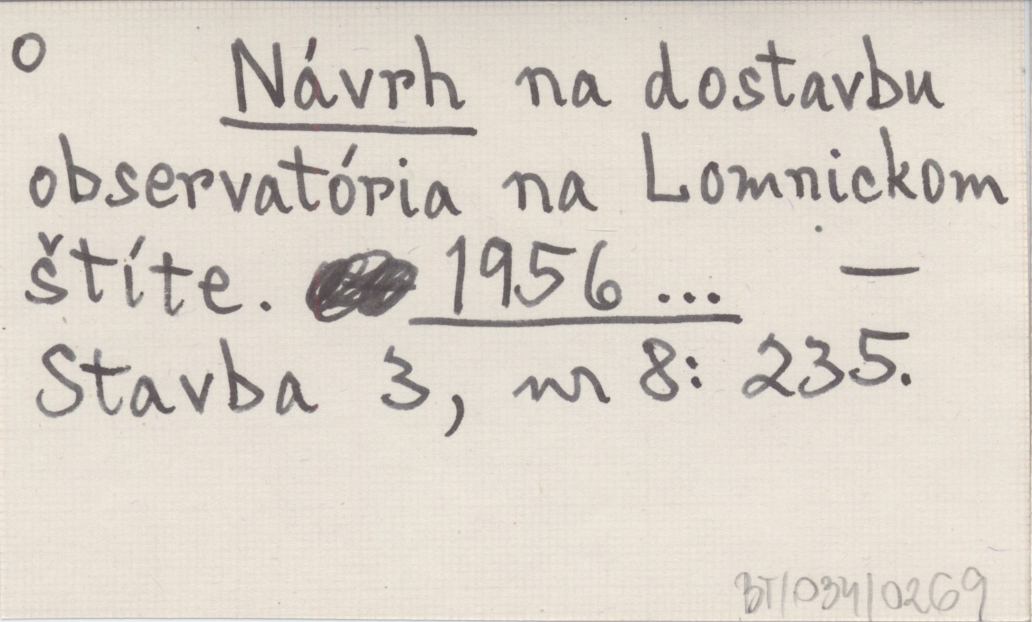 Návrh na dostavbu observatória na Lomnickom štíte. 1956...
