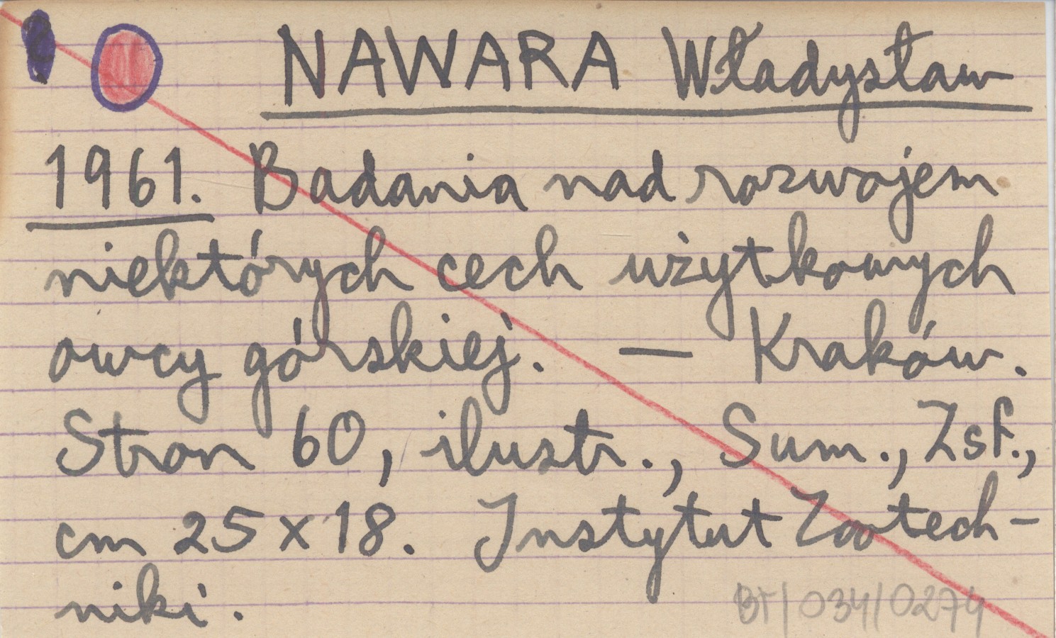 NAWARA Władysław 1961 Badania nad rozwojem niektórych cech użytkowych owcy górskiej.
