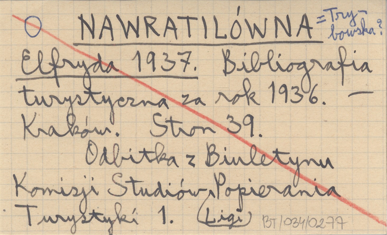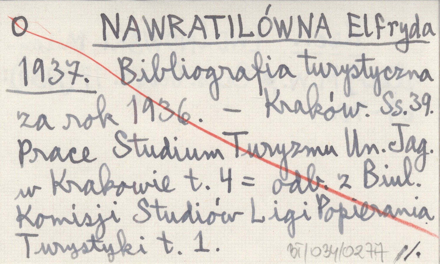 NAWRATILÓWNA Elfryda 1937 Bibliografia turystyczna za rok 1936.