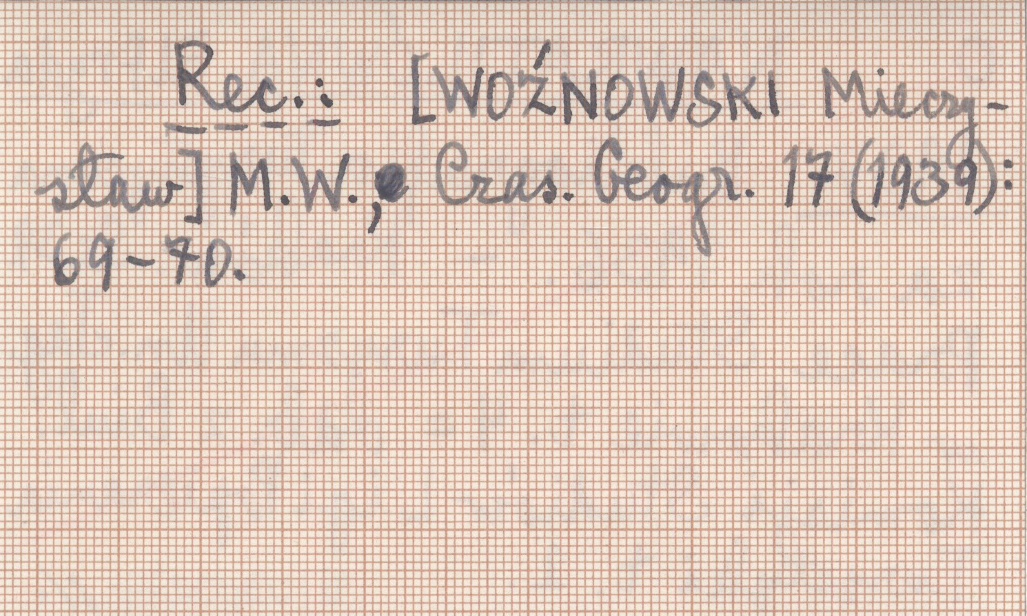 Kraków (Prace Studium Turyzmu Un. Jag. w Krakowie, t. 4) , 39 s. odb. z Biul. Komisji Studiów Ligi Popierania Turystyki t. 1. REC: [WOŹNOWSKI Mieczysław] M.W., Czas. Geogr. 17 (1939): 69-70