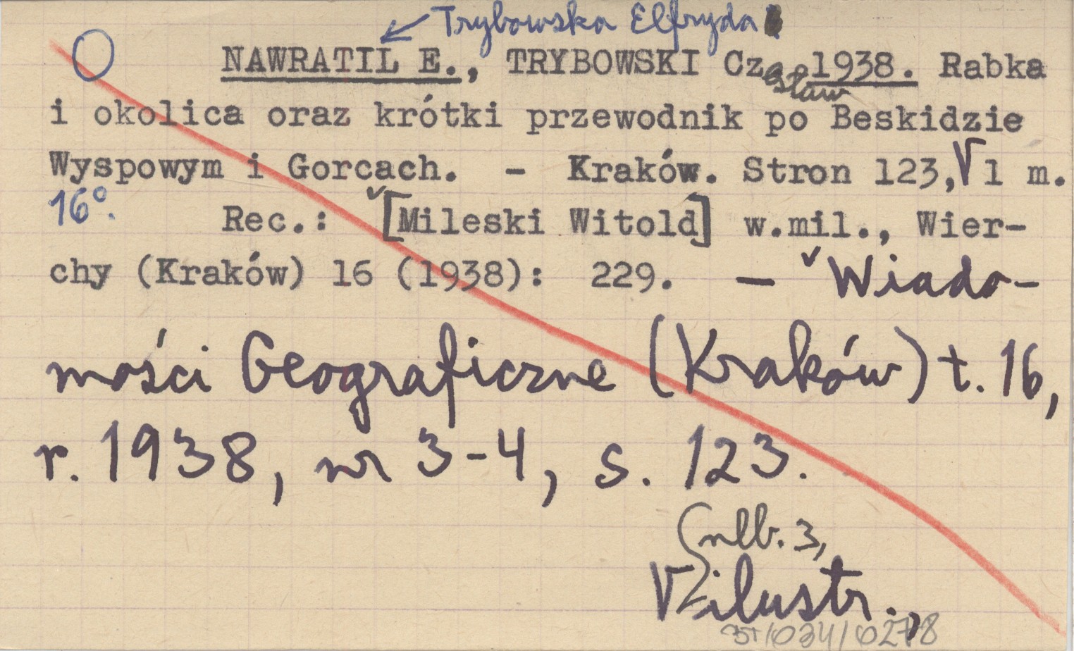 Trybowska Elfryda NAWRATIL E. TRYBOWSKI, Czesław. ; 1938 Rabka i okolica oraz krótki przewodnik po Beskidzie Wyspowym i Gorcach.