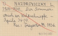NAZDROVICZKY L. 1929-1930 Der Sommerstrich der Waldschnepfe.