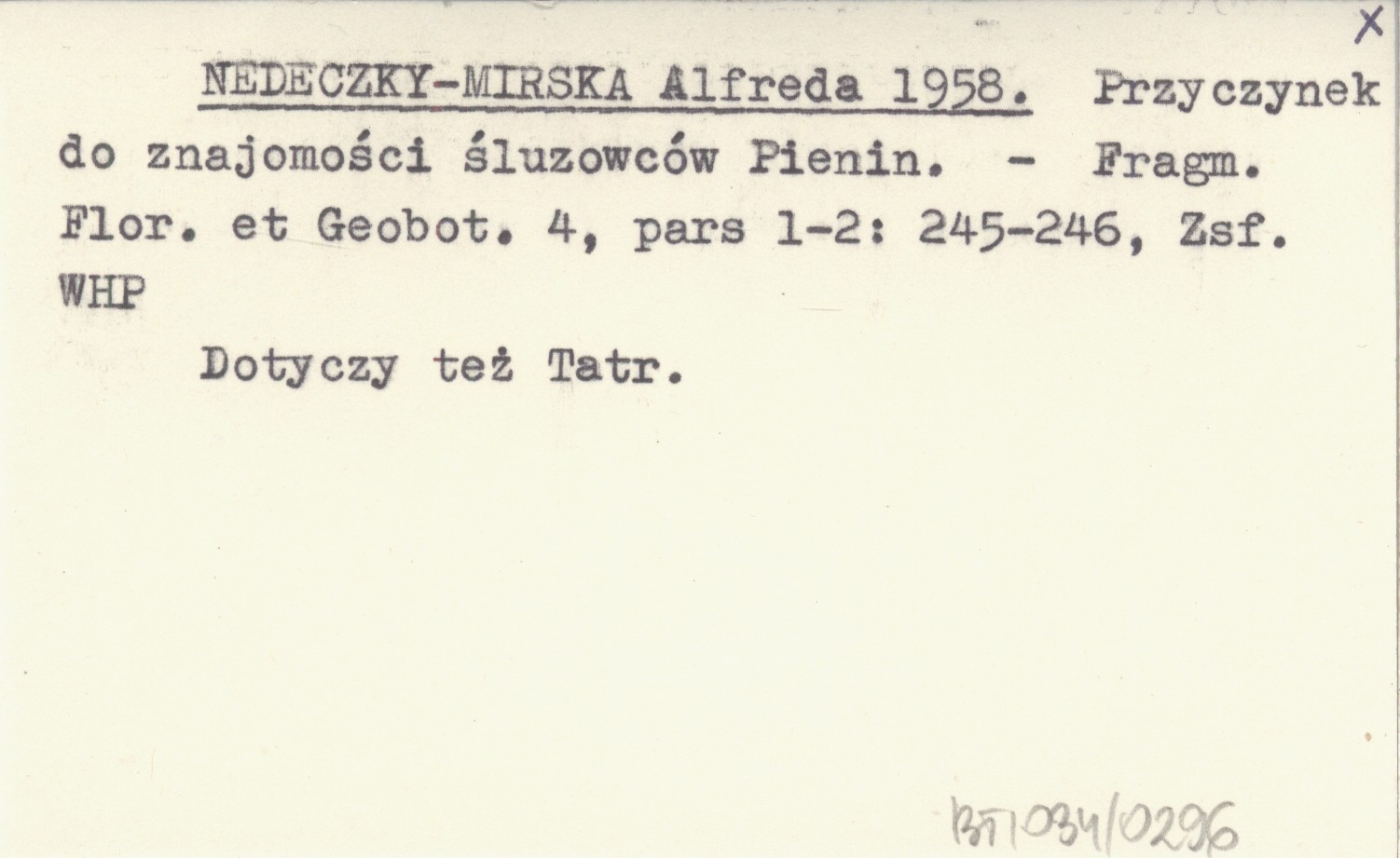 NEDECZKY-MIRSKA Alfreda 1958 Przyczynek do znajomości śluzowców Pienin.
