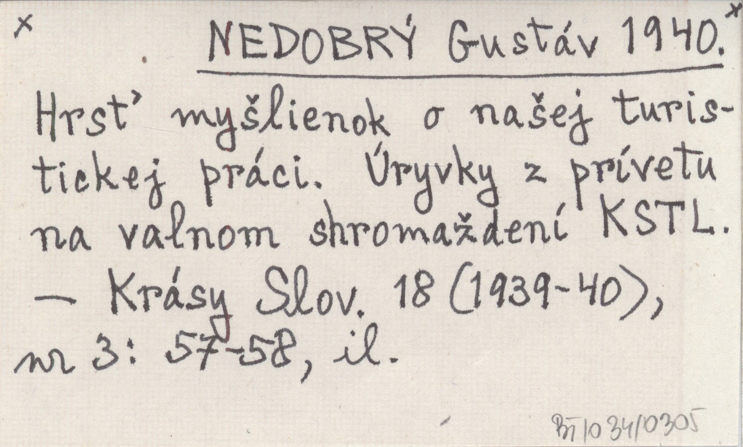 NEDOBRŻ Gustįv 1940 Hrs» my¹lienok o na¹ej turistickej prįci. Śryvky z prķvetu na valnom shroma¾denķ KSTL.